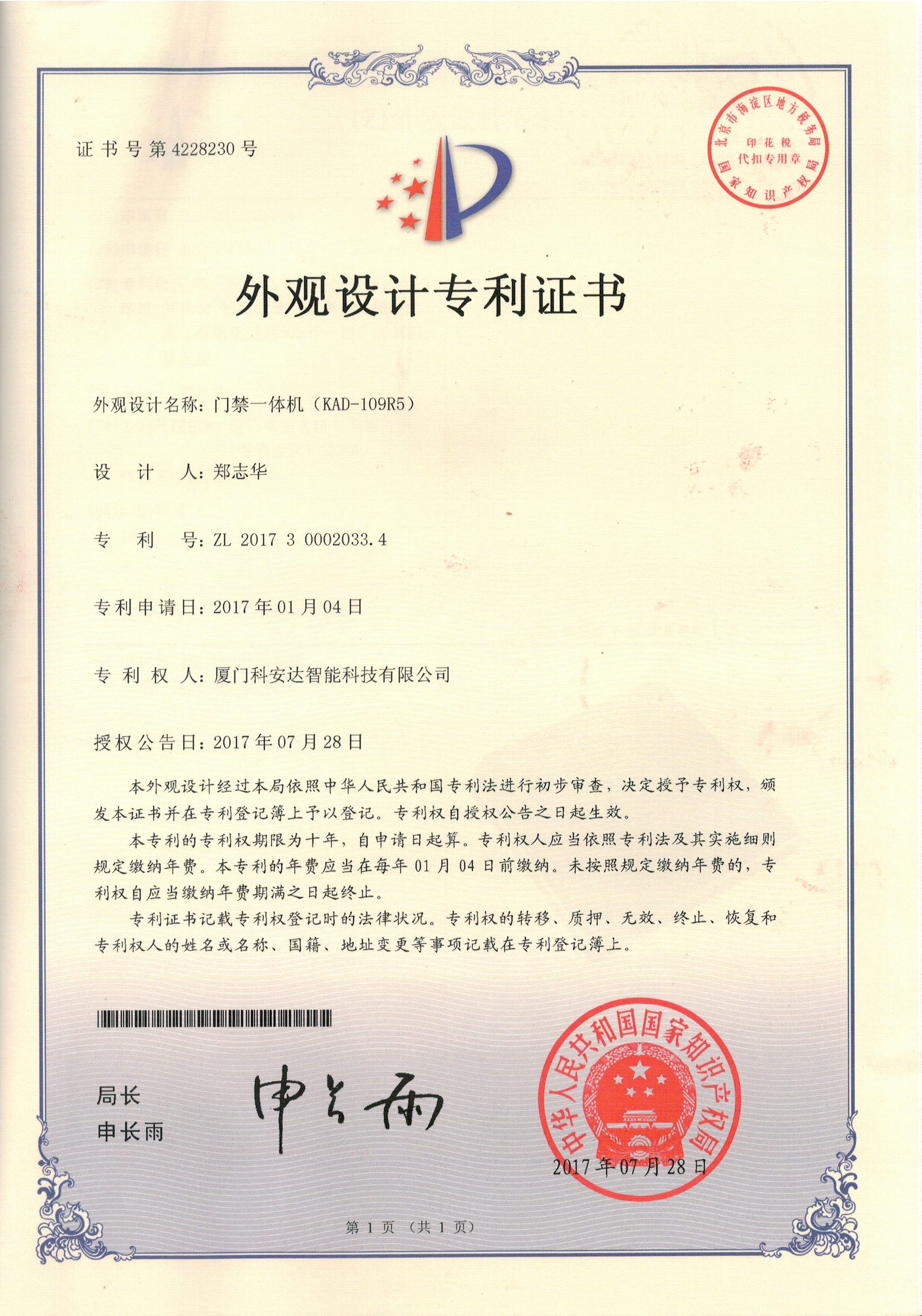 外觀專利證書